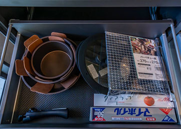 調理器具一式・食器類・調味料(塩・醤油・胡椒)
